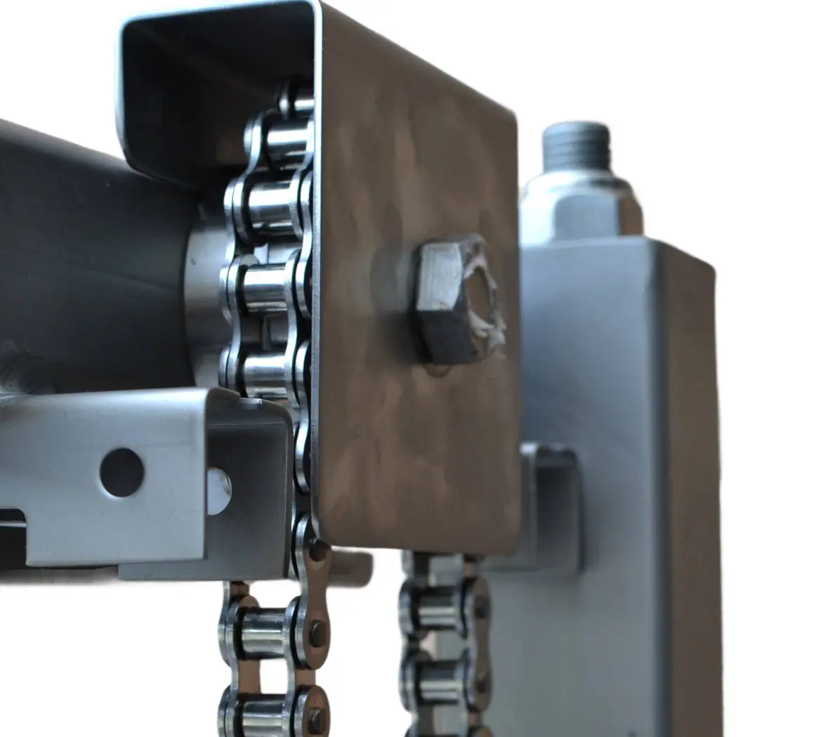 Los diferentes niveles del sistema multimolde se interconectan mediante un avanzado sistema de cadenas de eslabones, diseñado para mantener una separación constante entre plataformas mientras permite la personalización flexible de las alturas según las especificaciones particulares de cada cliente. Esta adaptabilidad asegura que el sistema pueda configurarse óptimamente para diferentes productos y procesos industriales específicos, maximizando la eficiencia productiva en diversas aplicaciones.